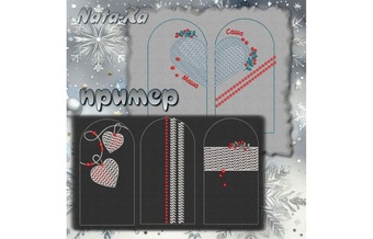 В набор входит 9 маленьких дизайнов для вышивки на варежках (контуры варежек на картинках показаны для примера):